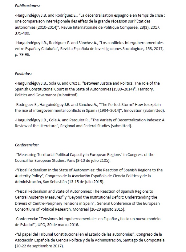 - Cuarto objetivo: finalmente, se intentó recabar datos cualitativos sobre la evolución de las tensiones territoriales en España a través de entrevistas semi-estructuradas con las élites políticas autonómicas y estatales. Tres casos parecían especialmente relevantes aquí: el País Vasco, Cataluña y Andalucía